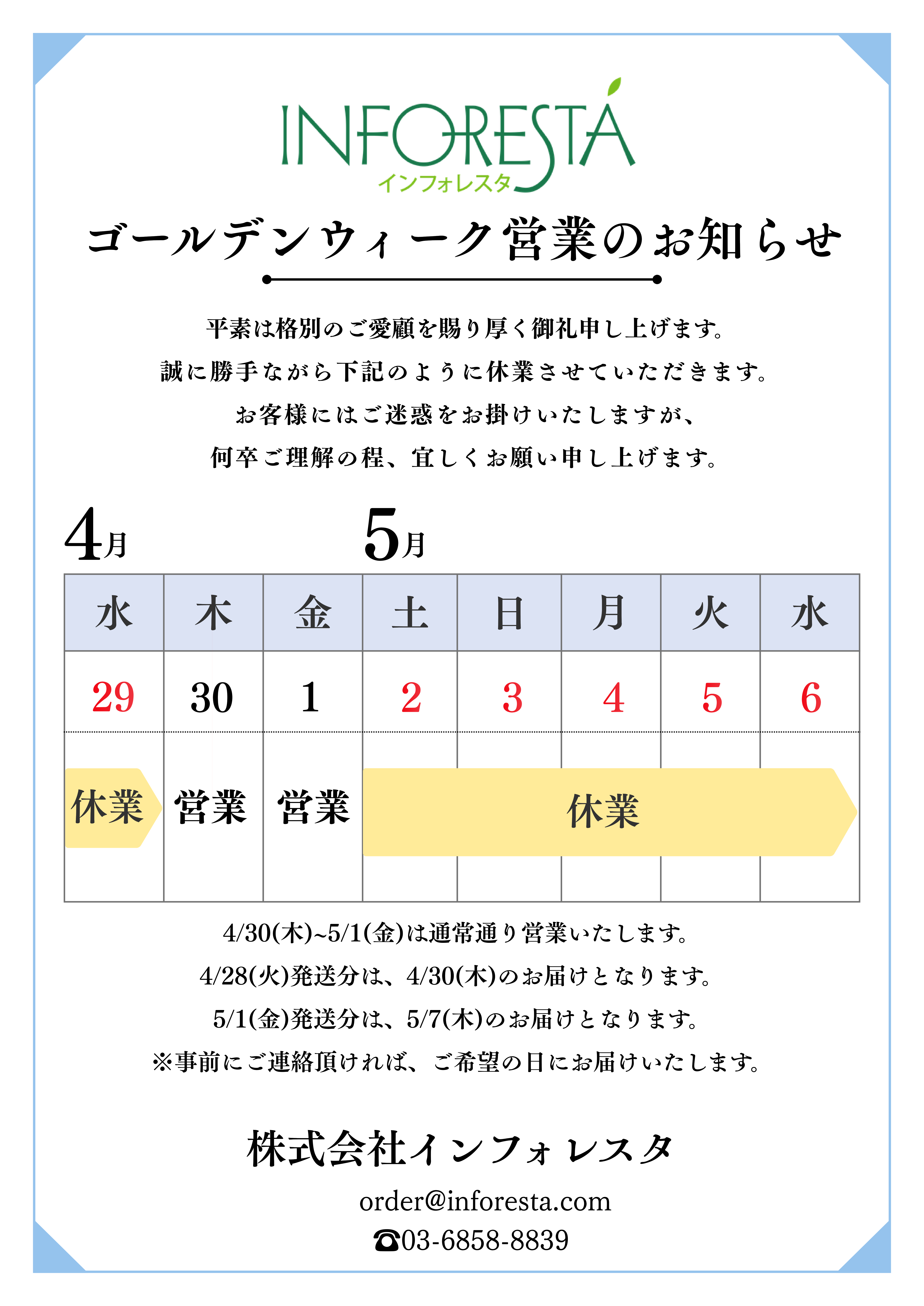 > 2026年ゴールデンウィーク営業日のお知らせ